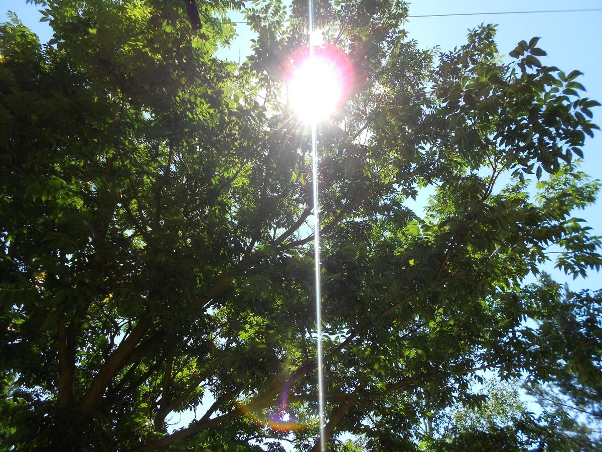 foto z 2013 08 05 v 14:13 soused likviduje následky včerejší bouřky - jeho krásný stříbrný smrk se mu opřel o naší střechu - střecha s okapem to vydržela - jen smrk to má spočítené - škoda ho- sluníčko hřeje a je mírný vánek