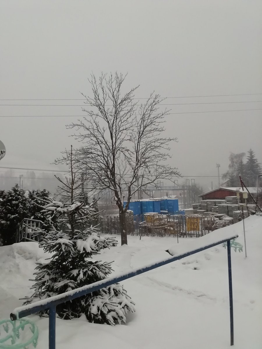 Drobné vločky,husté sněžení.
