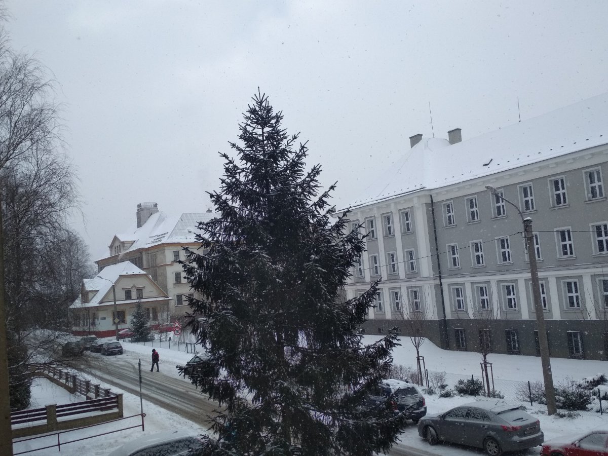 Aktuálně převažuje většinou zataženo a slabě sněží a fouká většinou slabý vítr, oteplilo se