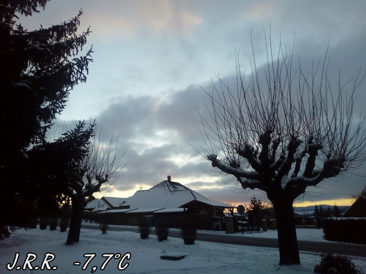 Klidno. Námraza z mlhy. Nejnižší noční teplota byla -13,2°C. Sněh. pokrývka cca 15 cm.
