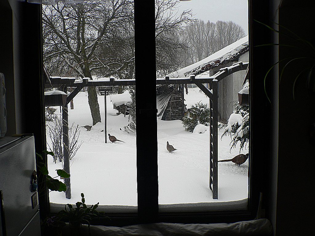 málinko sa otepľuje a vonku to chumelííí:-) Honzíku spoza okna? ja pekne z vonku :-) a sleduješ to? už mám zimu ako ty, bielu a mrazivú :-)jéj ty bažanti...šupkom prešpikovať slaninou a na pekáč s červeným vínom :-)))