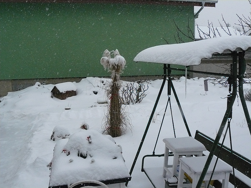 sněží a fouká bažanti super☺ můj pohled do zahrady
