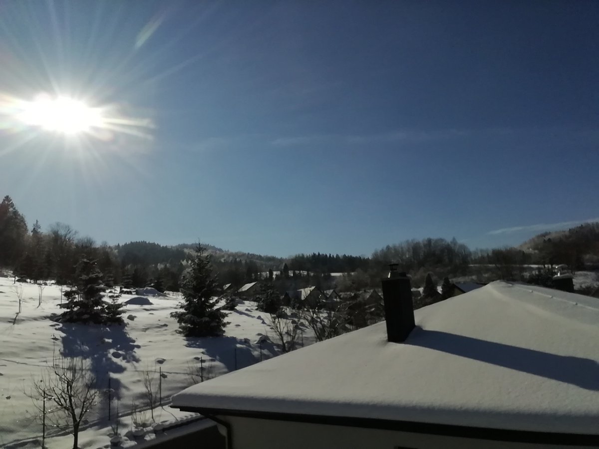 Už sníh taje a teče ze střech. Vitr mírný J.