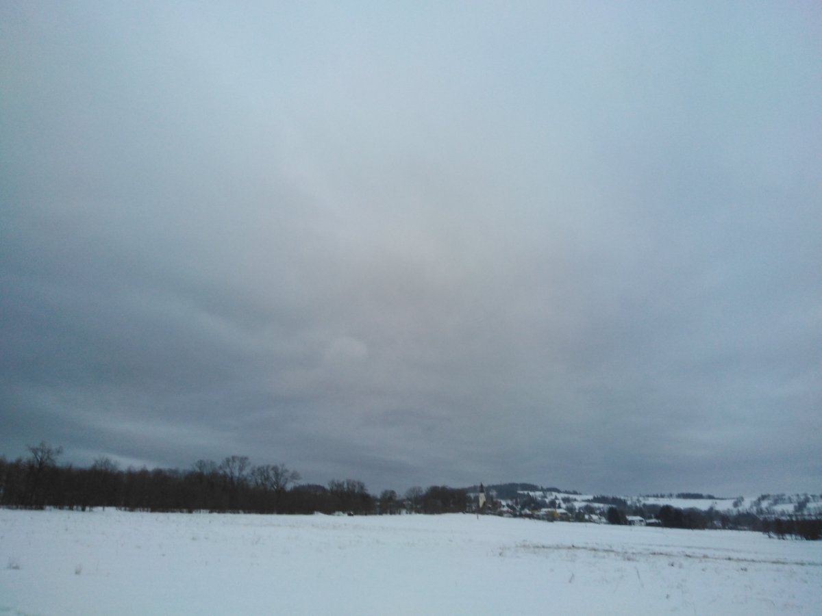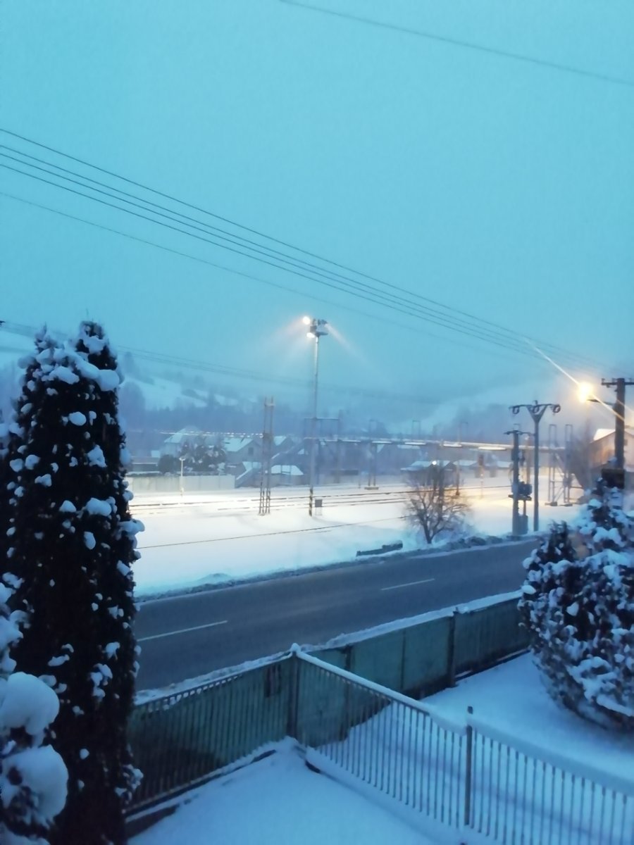 Aktuálně převažuje většinou zataženo a sněhově mrholí a fouká většinou slabý vítr, za noc napadlo cca 1.5 cm sněhu