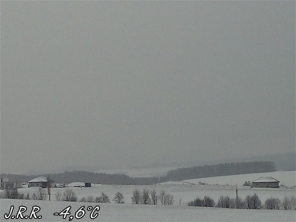 pravděpodobně -4°C, oblačno, sem tam spadne sněhová vločka. Podle radaru se prý blíží silnější sněžení, tak uvidíme.