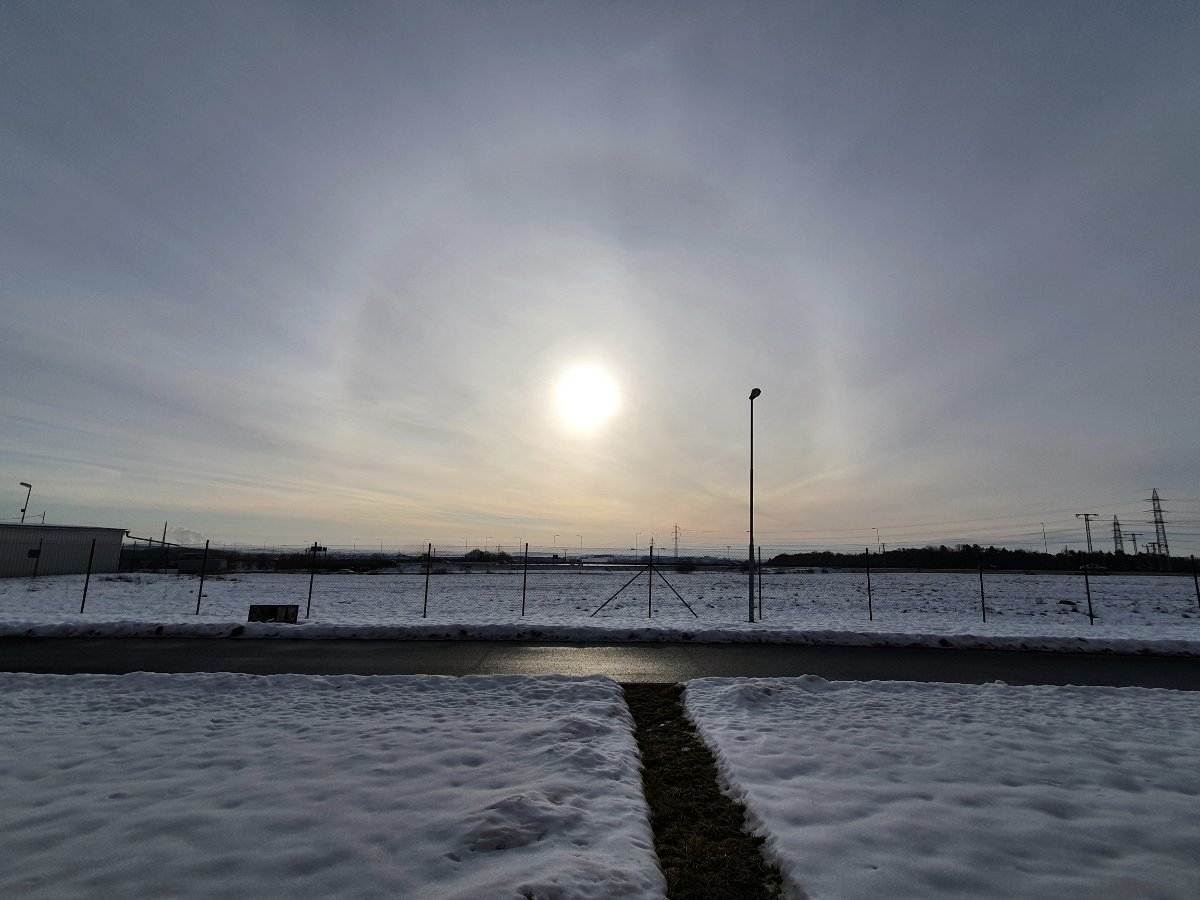 Polojasno, vítr mírný. Pohoda. Tlak 1019 hPa, vlhkost 68%, vítr V 2,2 km/hod. Sněhu ubývá.