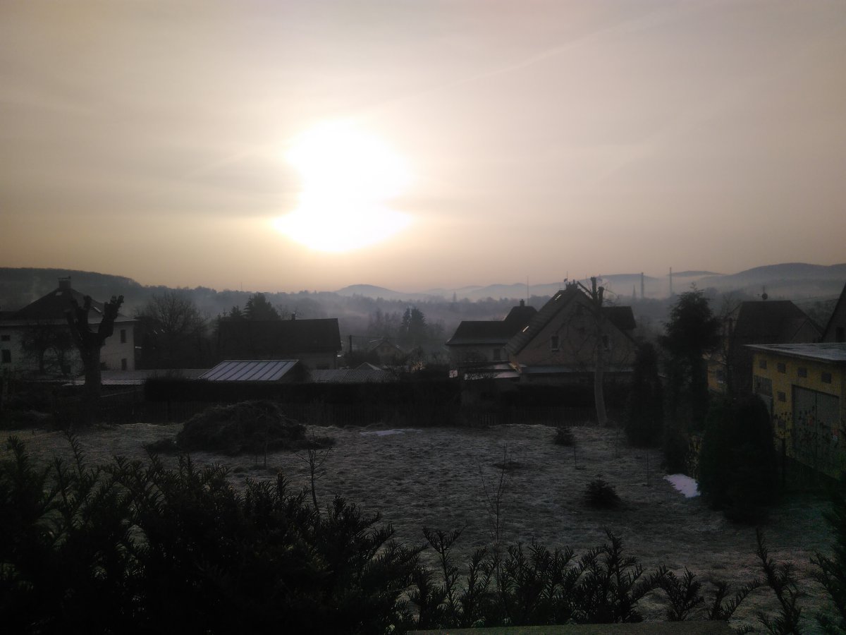 Mlha(dohlednost 200m), oblačnost 100%, tlak 1034,75hPa▲, poc.teplota -2,08°°C, tepl.ros.bodu 0,12°C, rel.vlhkost 98,0%, abs.vlhkost 4,88g/m3, S vánek 357° 2,448km/hod.(1 Bft), ozon 292,1D.U., AQI 84(mírné znečištění ovzduší), UV index 0, délka dne 10hod.39min.50vt., včerejší průměrná teplota 5,24°C.