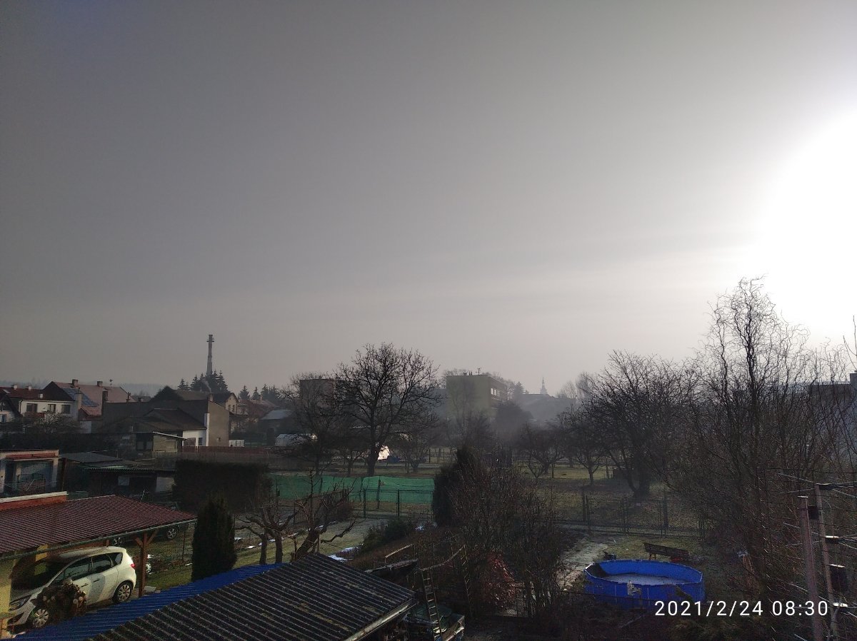 Klidno nebo jen slabý vítr. Přízemní mlha, nad ní jasno.