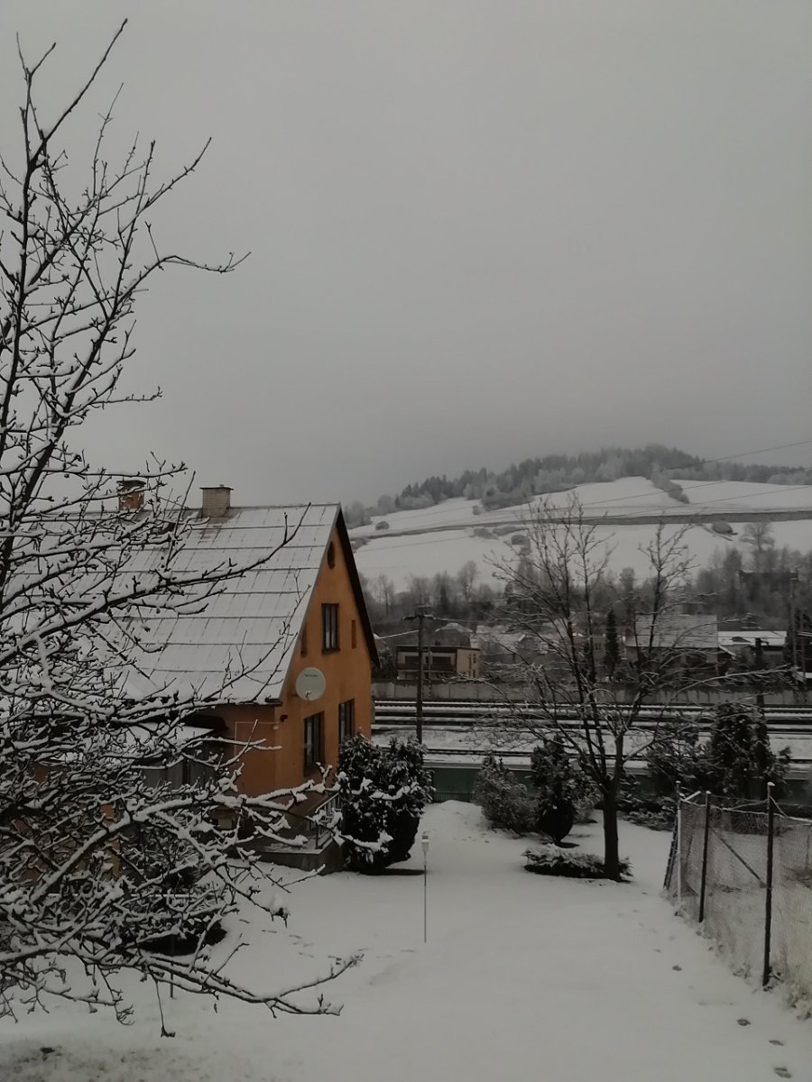 Ráno pěkné, nečekané překvapení. Místo ohlášené břečky nakonec mrzne a již napadlo 7-8cm. Pofukuje čerstvý vítr.