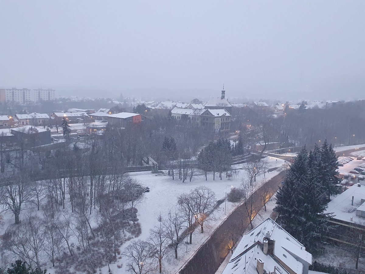 Aktuálně převažuje většinou oblačno a fouká většinou vánek, v noci napadl poprašek sněhu