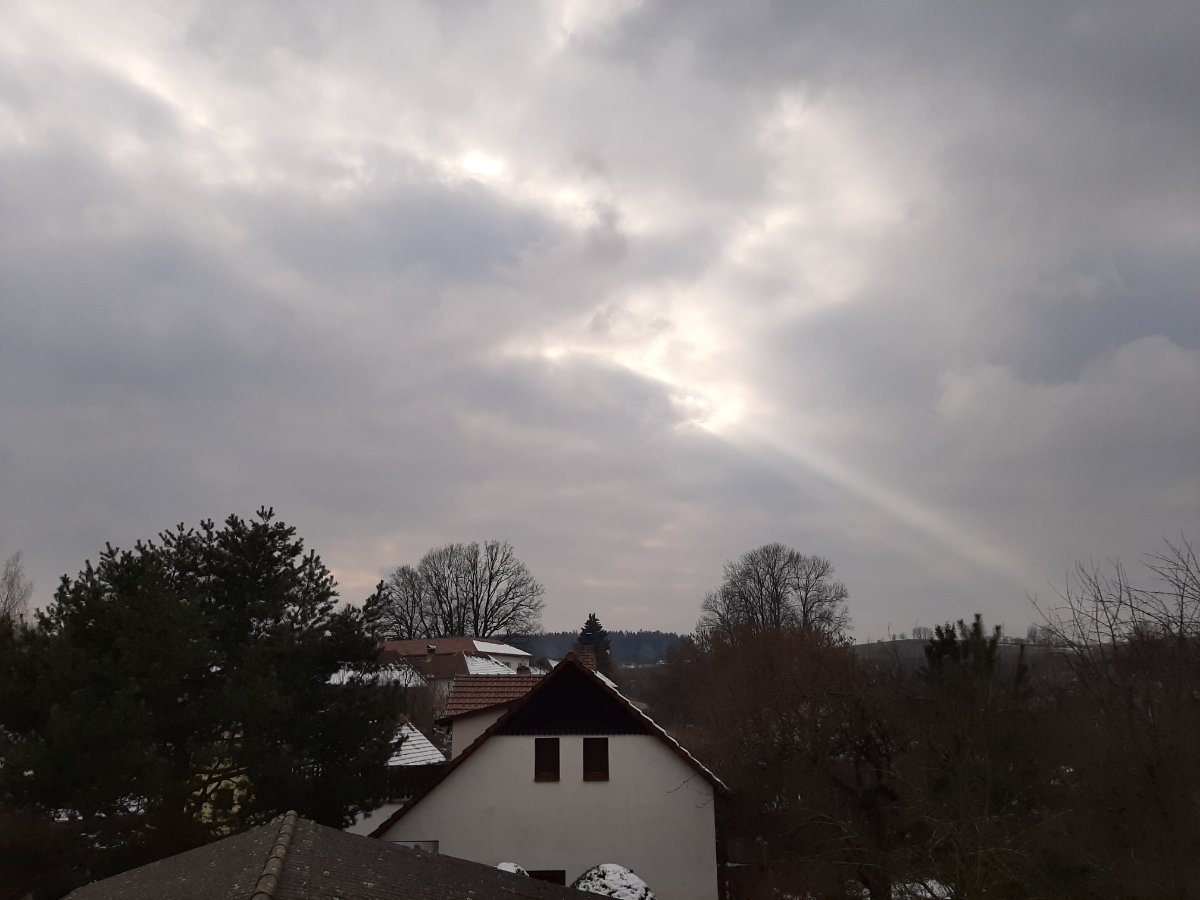 Slabý vítr. Nejnižší noční teplota byla -4,9°C. Přibývá vysoká frontální oblačnost od západu.