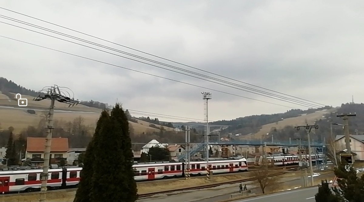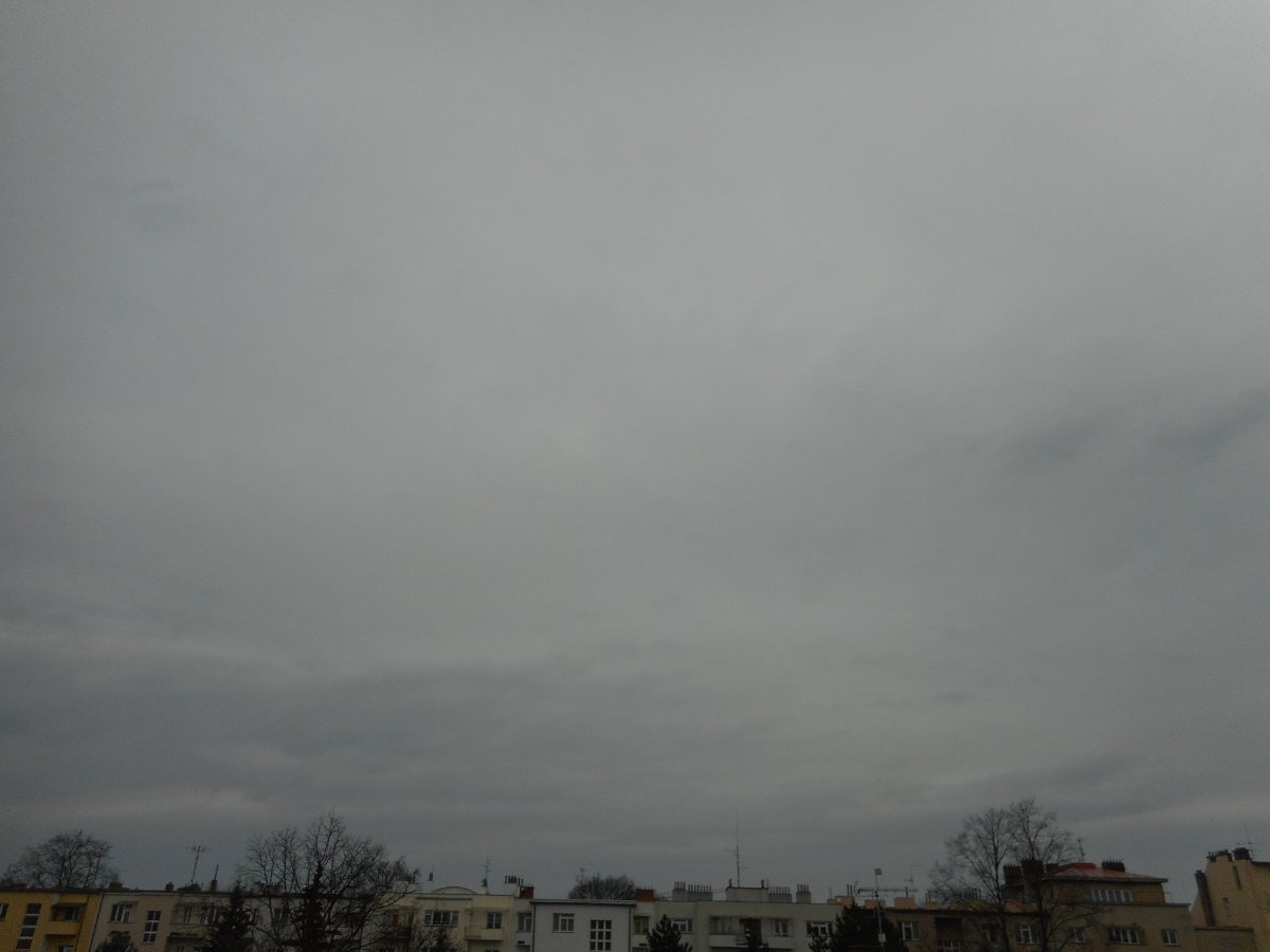 1,6°C, oblačno. Ze západu se blíží velmi silné sněžení. (žlutý odraz na radaru).