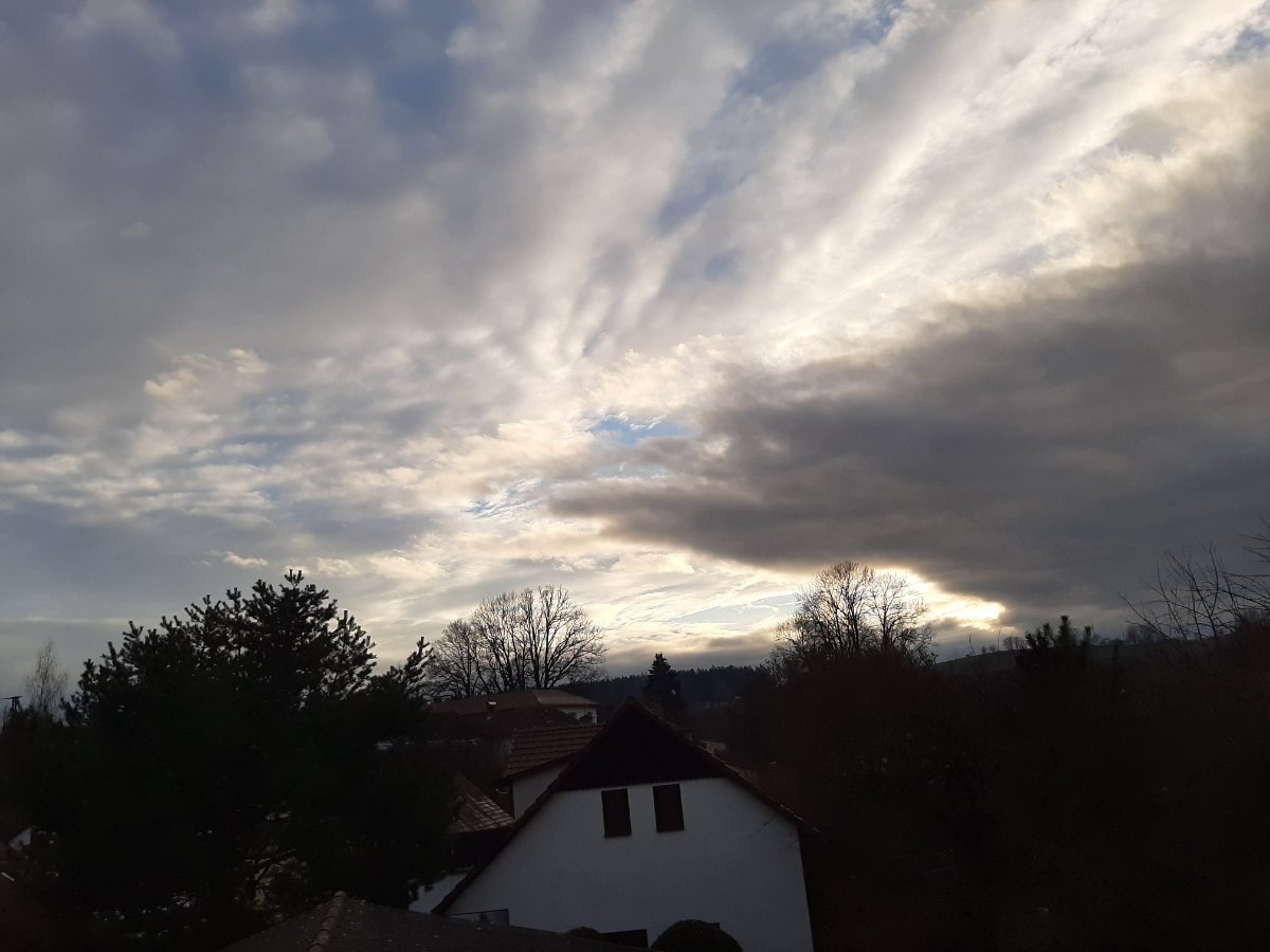 Zamračené, snehové mrholenie, silný nárazový vietor.