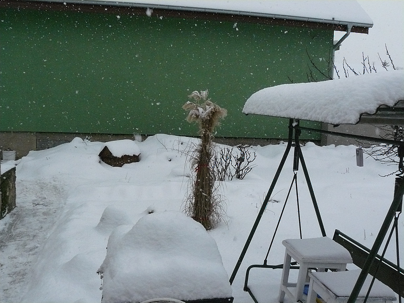 Leží mi cca 20cm snehu, prudký vzostup teploty a prudký pokles tlaku. Slniečko sa snaží predrať cez oblačnosť,ale zatiaľ sa mu nedarí. Tlak 998hPa, vlhkosť 77%