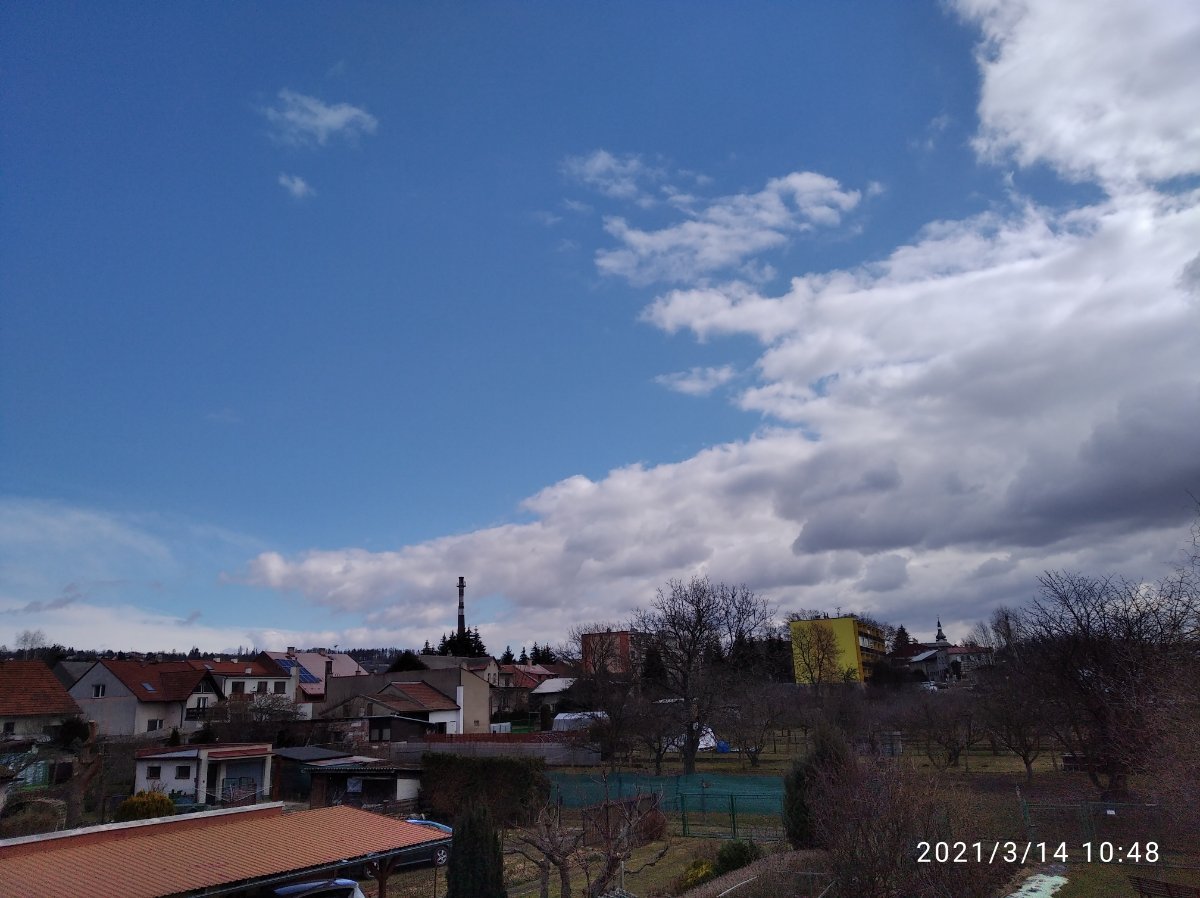 Aktuálně převažuje většinou zataženo až skoro zataženo přešla nás další krupková přeháňka a fouká většinou mírný vítr