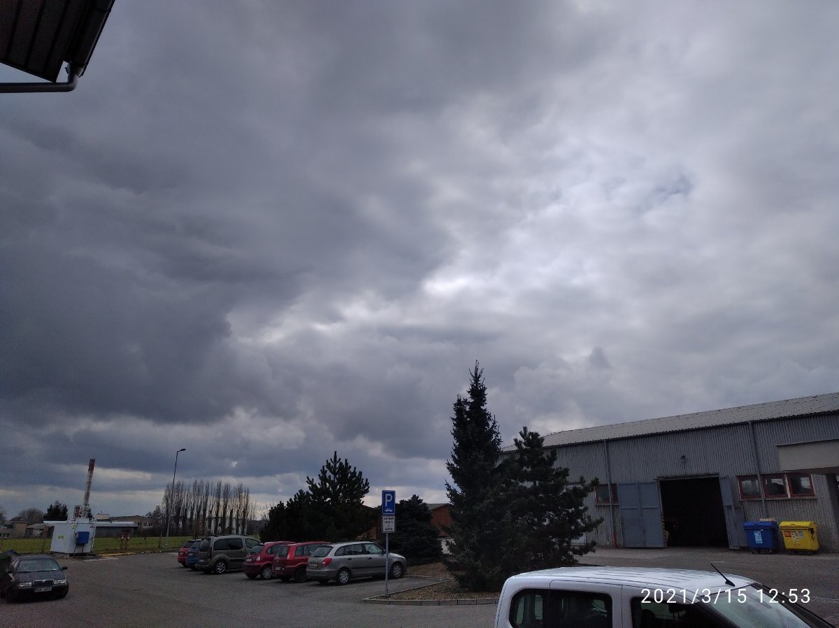 Zamračené, snehové krupky.