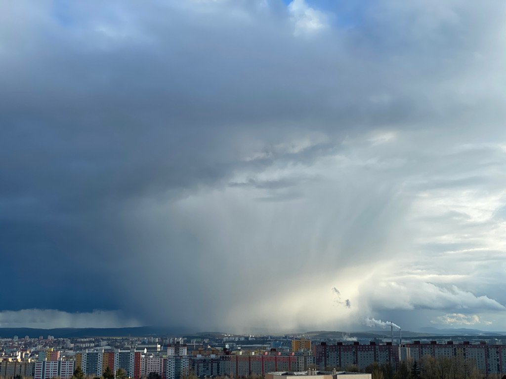 Zataženo, slabý déšť, čerstvý SZ vítr, tlak 1008 hPa.