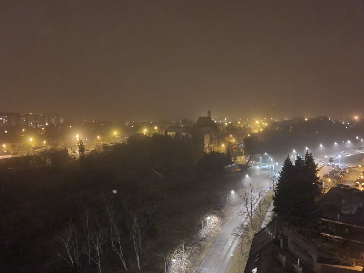 Je skoro zataženo a bezvětří. Po přeháňce tu máme poprašek.