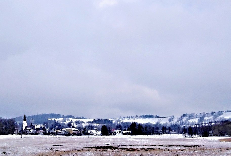 Ještě slabounce sněží ale už to taje. Stále je bezvětří.