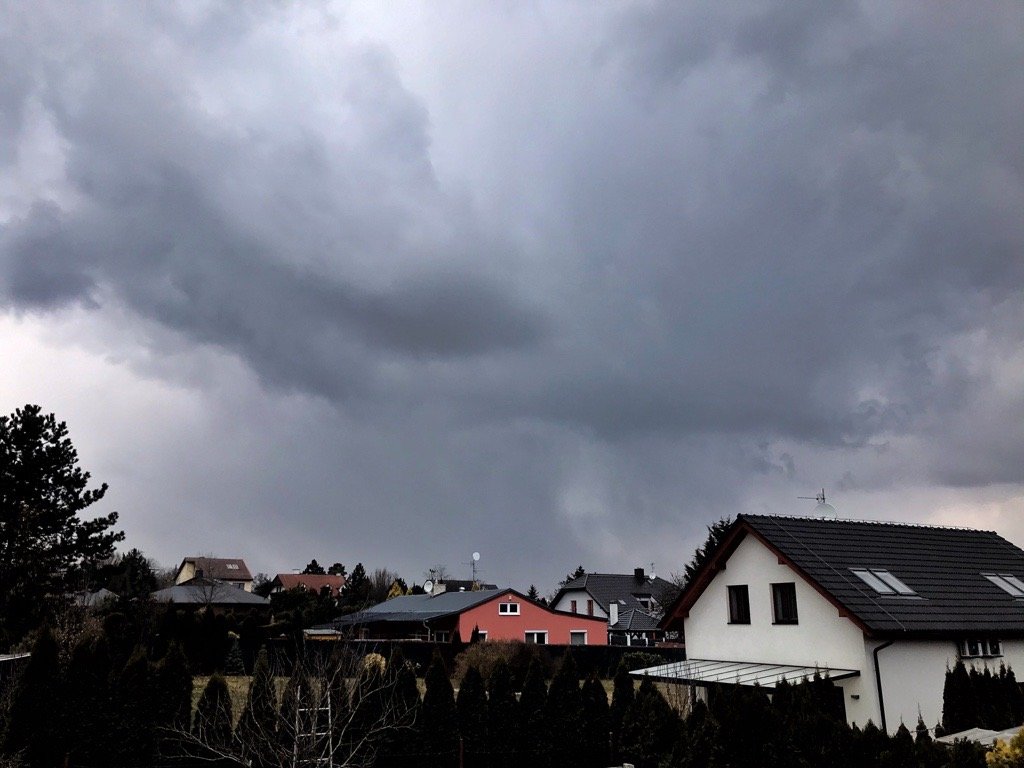Velmi silná přehánka, teplota klesla o 2°C a vytvořil se poprašek.