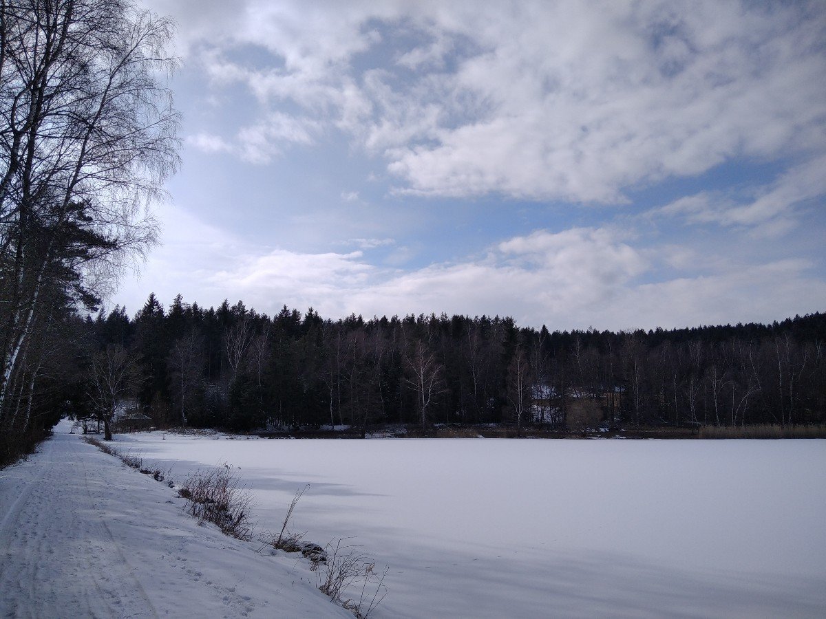 Hustě sněží,klidno,tlak 1017 hPa