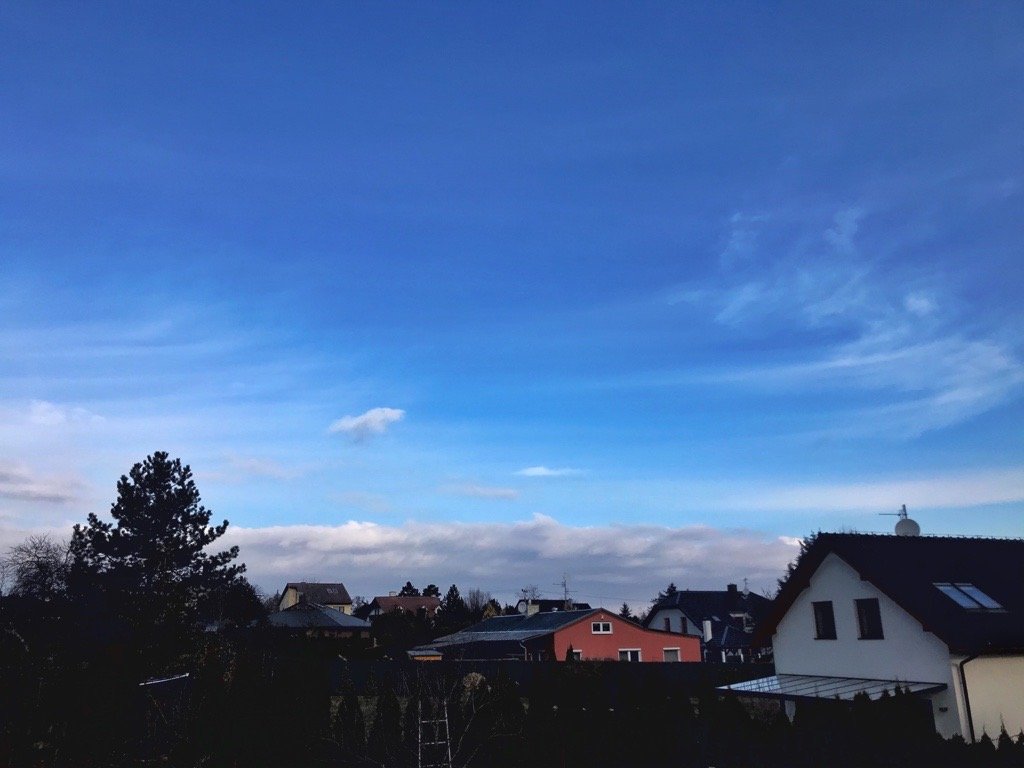 Slabý vítr. Přibývání - vývoj kupovité oblačnosti. Nejnižší noční teplota byla -4,2°C.