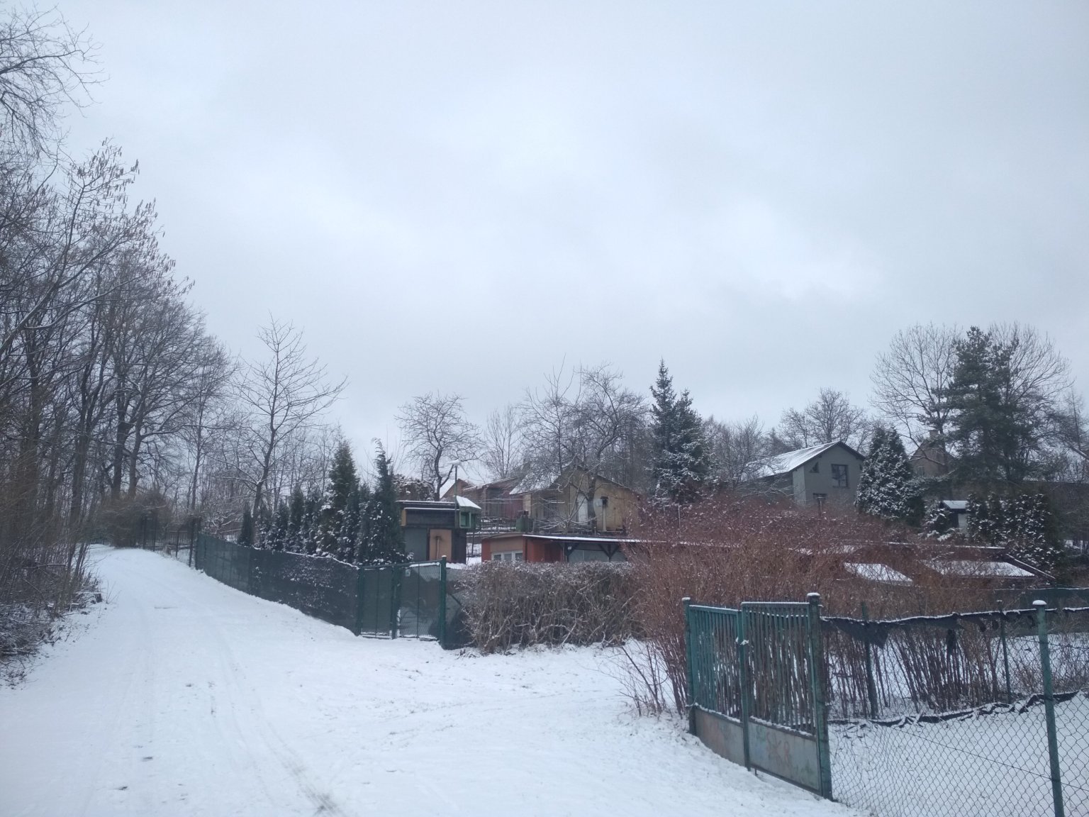 Poletuje sníh, málo, ale poletuje. Vítr SZ 0,7 km/hod. Je bílo, ale už aby se zase zelenalo.