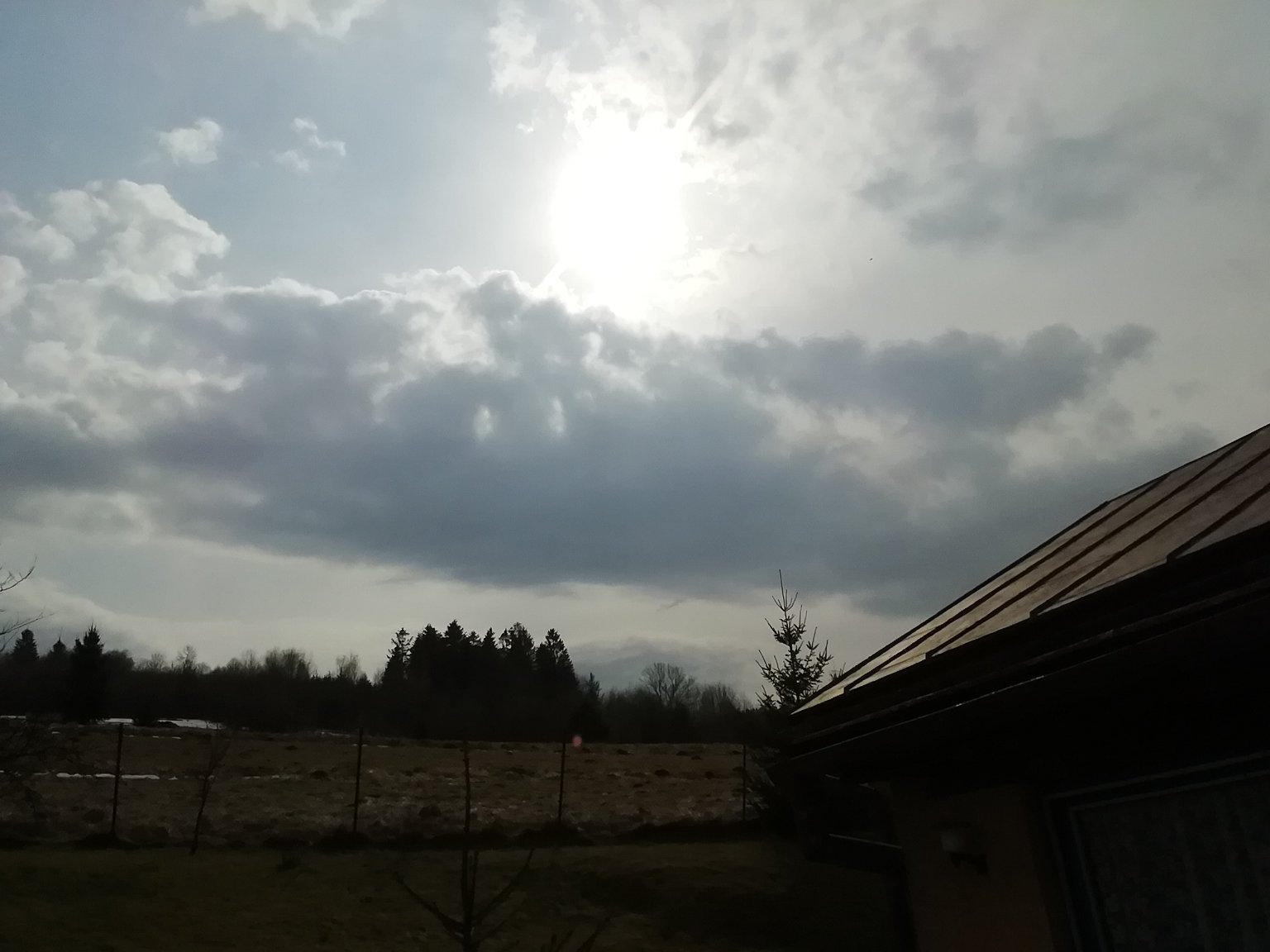 16°C, Oblačno, záhadná čára mraků anebo deště.