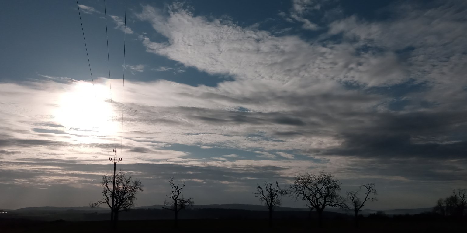 Dnes máme jasnou oblohu,žádný vítr,vlhkost 86 % a tlak se od včerejška drží na 1032,5 hPa.