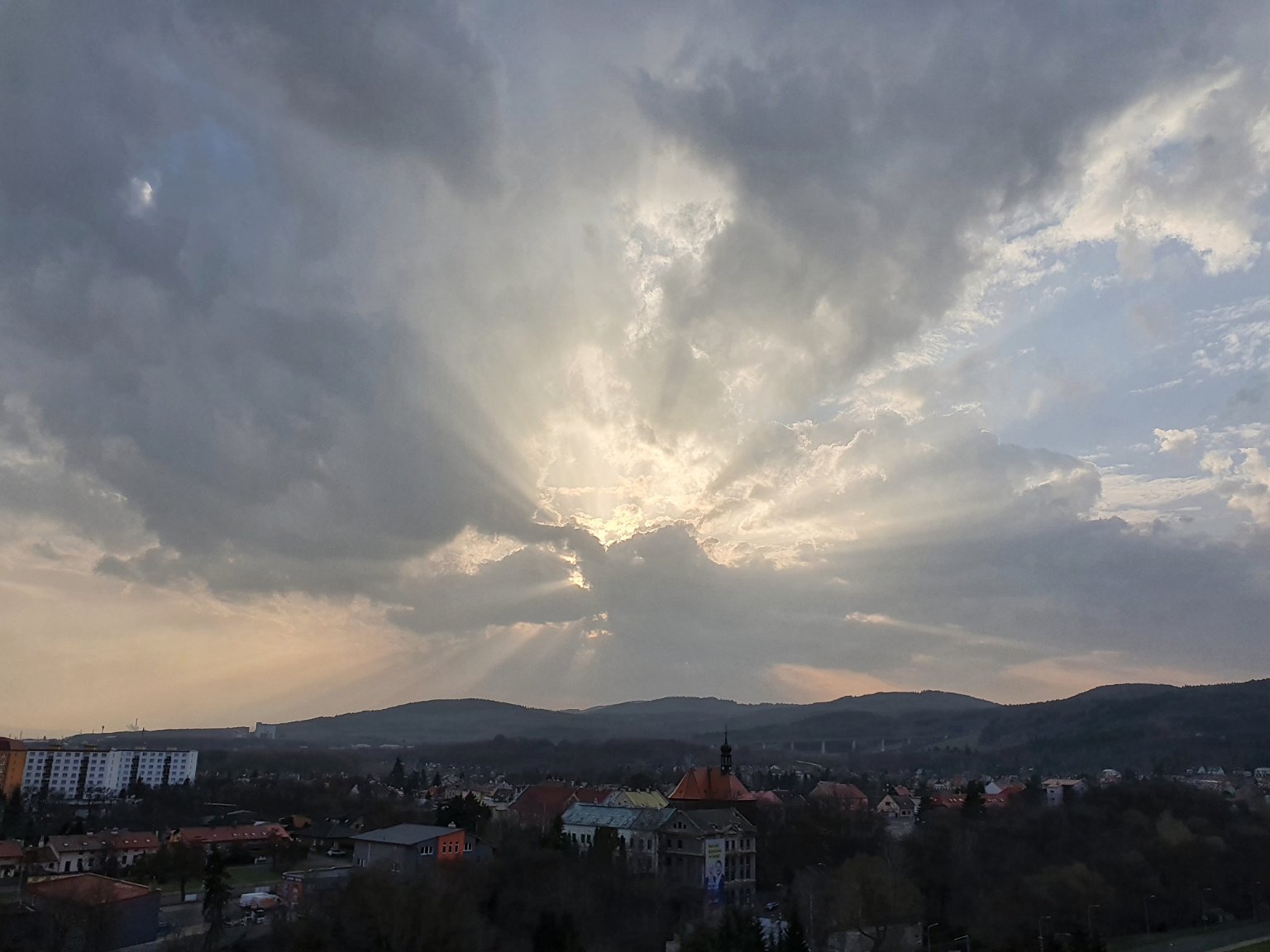 skoro zataženo, mírný vítr, zatím jen pár kapek deště, 16°C