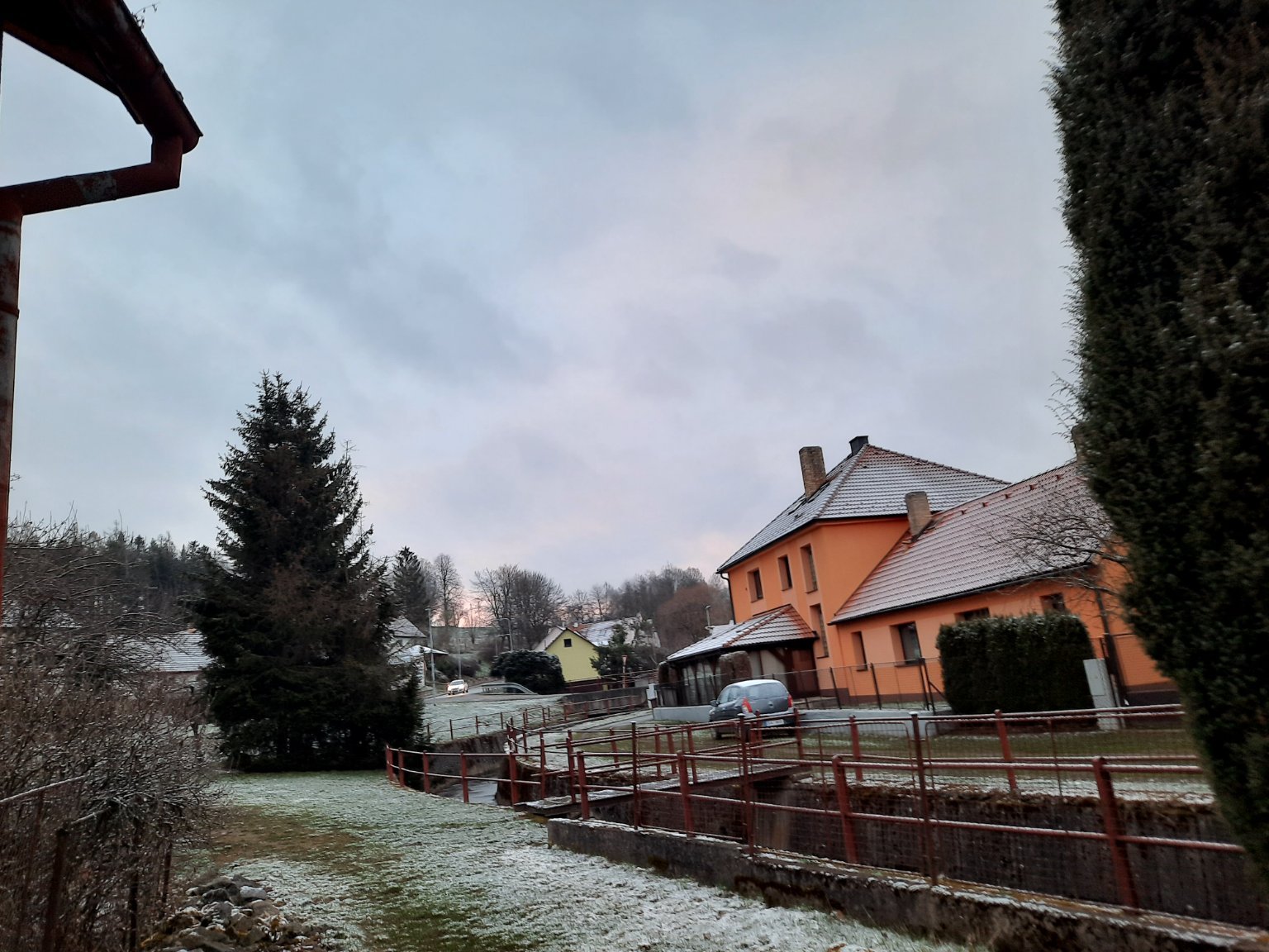 Sněhový poprašek, vítr S, tlak 1020 hPa.