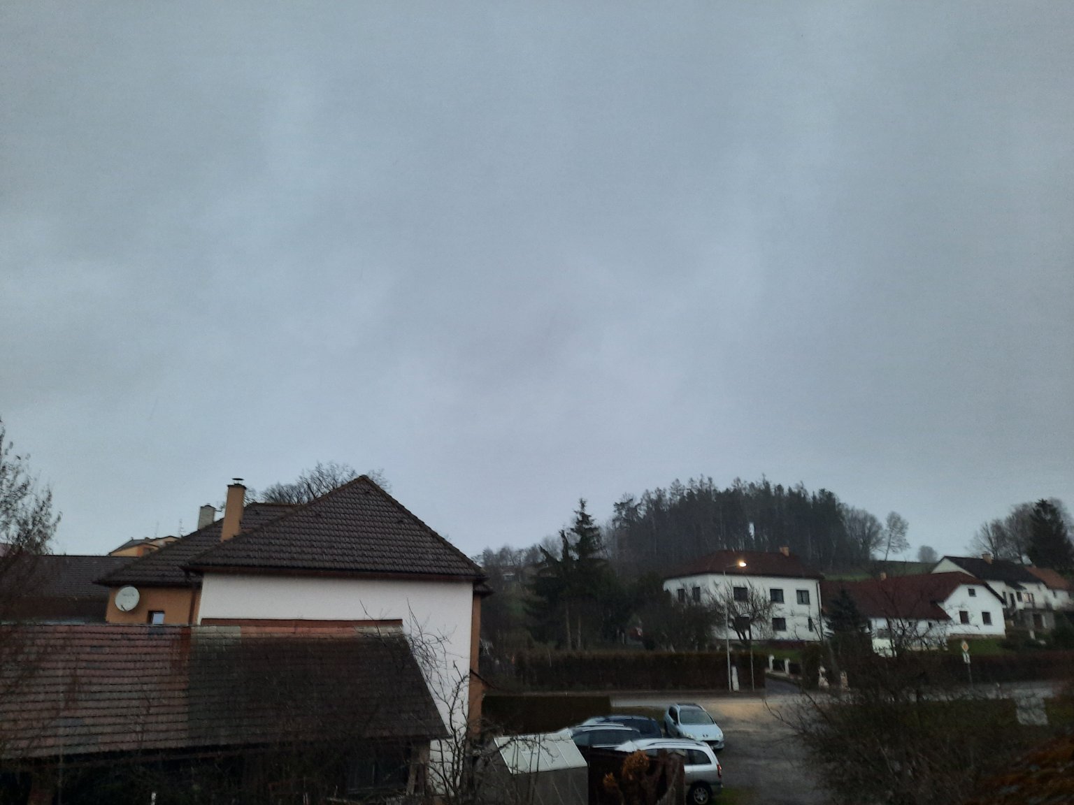 10,8°C, popadavaji dešťove kapky. Krásne dešťové pásy stále přetrvávají.