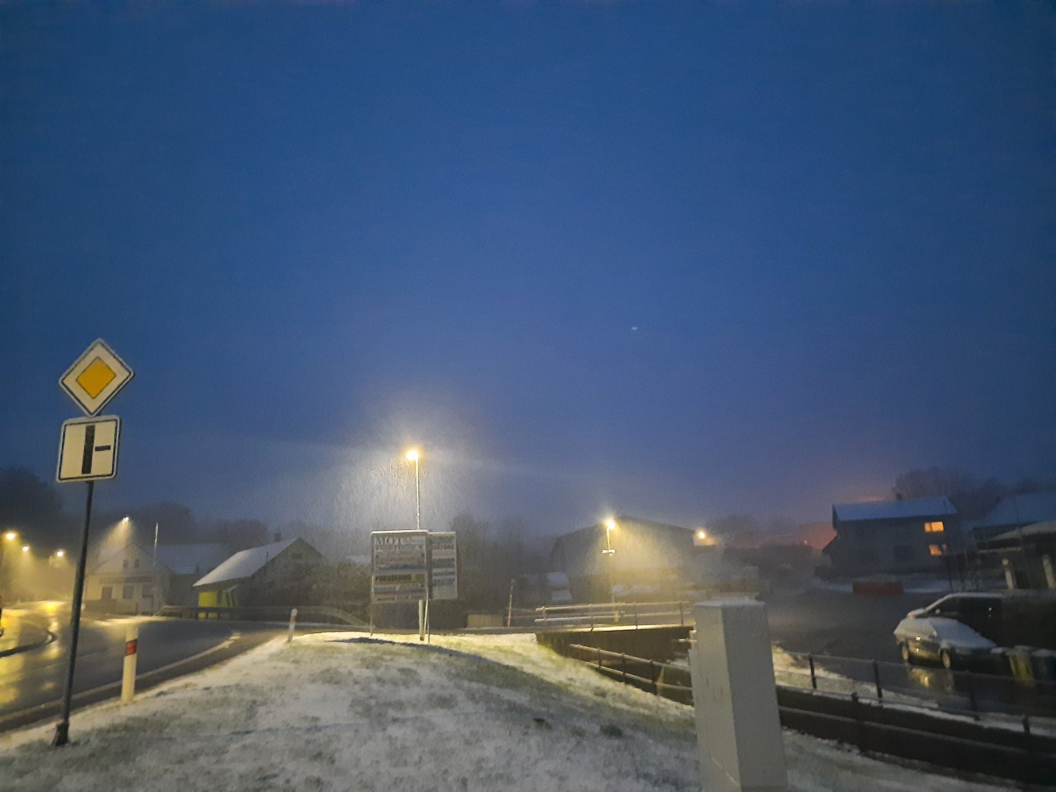 Skoro zataženo až oblačno. Už se to protrhává za frontou. Nakonec poprašek na trávě zůstal.