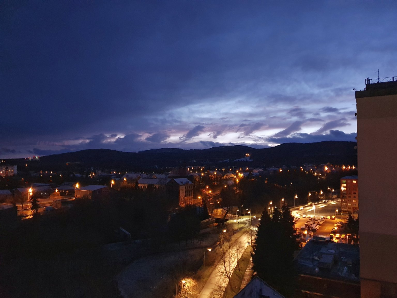 max. 12.5°C / déšť přešel do hustého sněžení, mírný vítr, rychle se ochladilo, 0°C