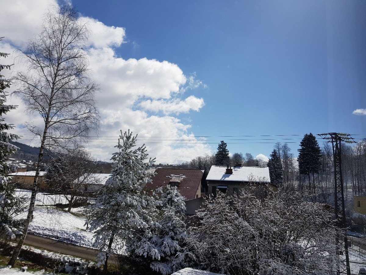 cestou naměřeno až 2,5cm nového, velmi mokrého sněhu, stále poletuje a už se protrhává oblačnost