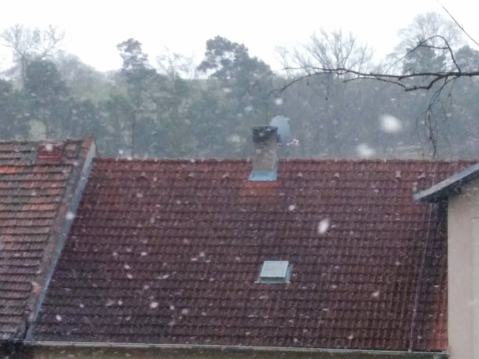 Stakčín - východní Slovensko. Na hranicích UA silné sněžení, napadlo cca 20 cm sněhu od rána.