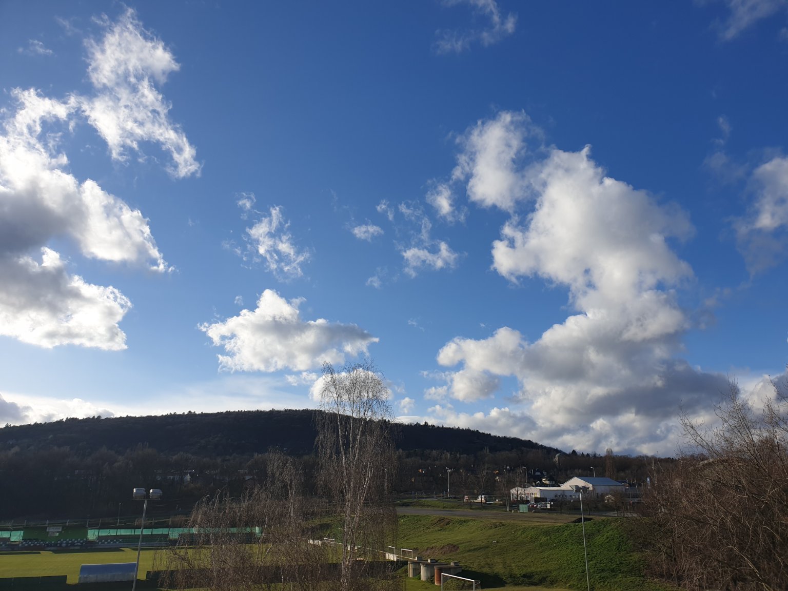 V dáli ještě poslední rozpadající se přeháňky. SZ vítr už slábne 12 km/h, tlak 1007,8 hPa, vlhkost 61 %. Dnešní maximální teplota byla 1,6 °C.