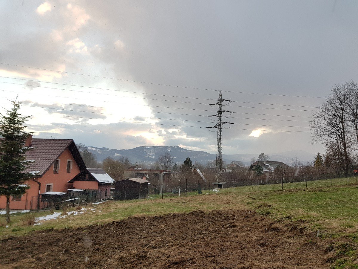 1°C, Po sněhové přeháňce zůstal na střeše poprašek.