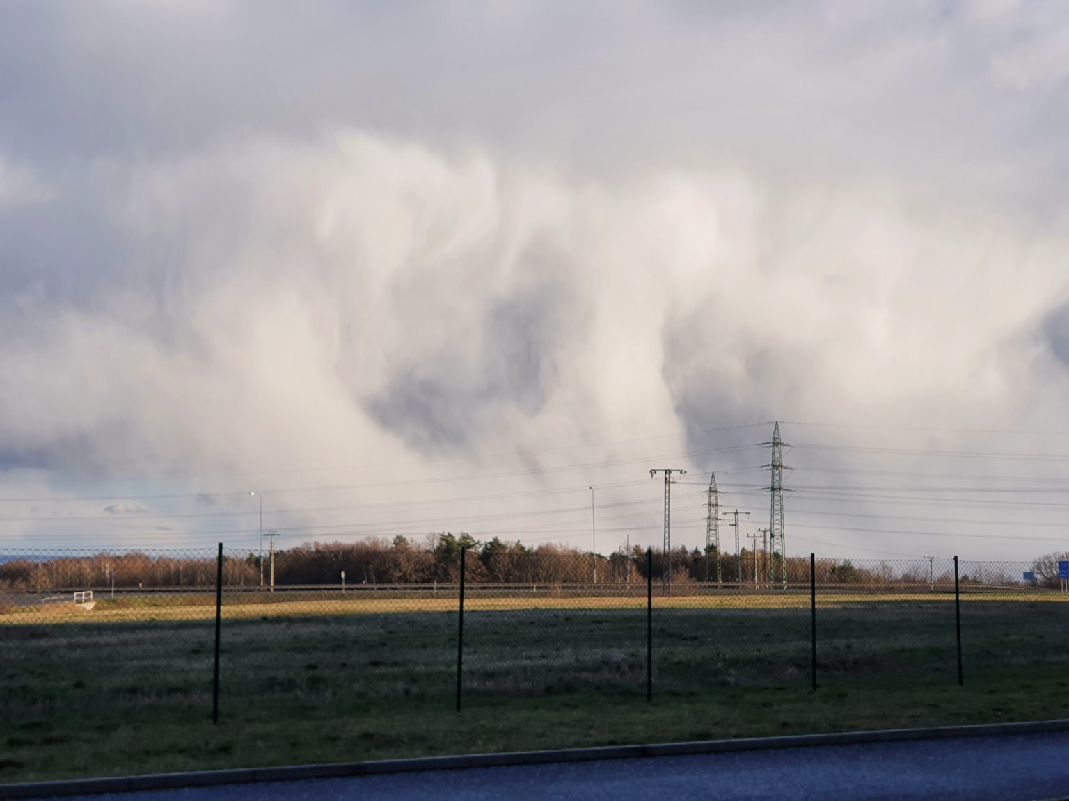 1,1°C, Polojasno. Krásný zapad slunce přes velmi slabou sněhovou přehaňkou.