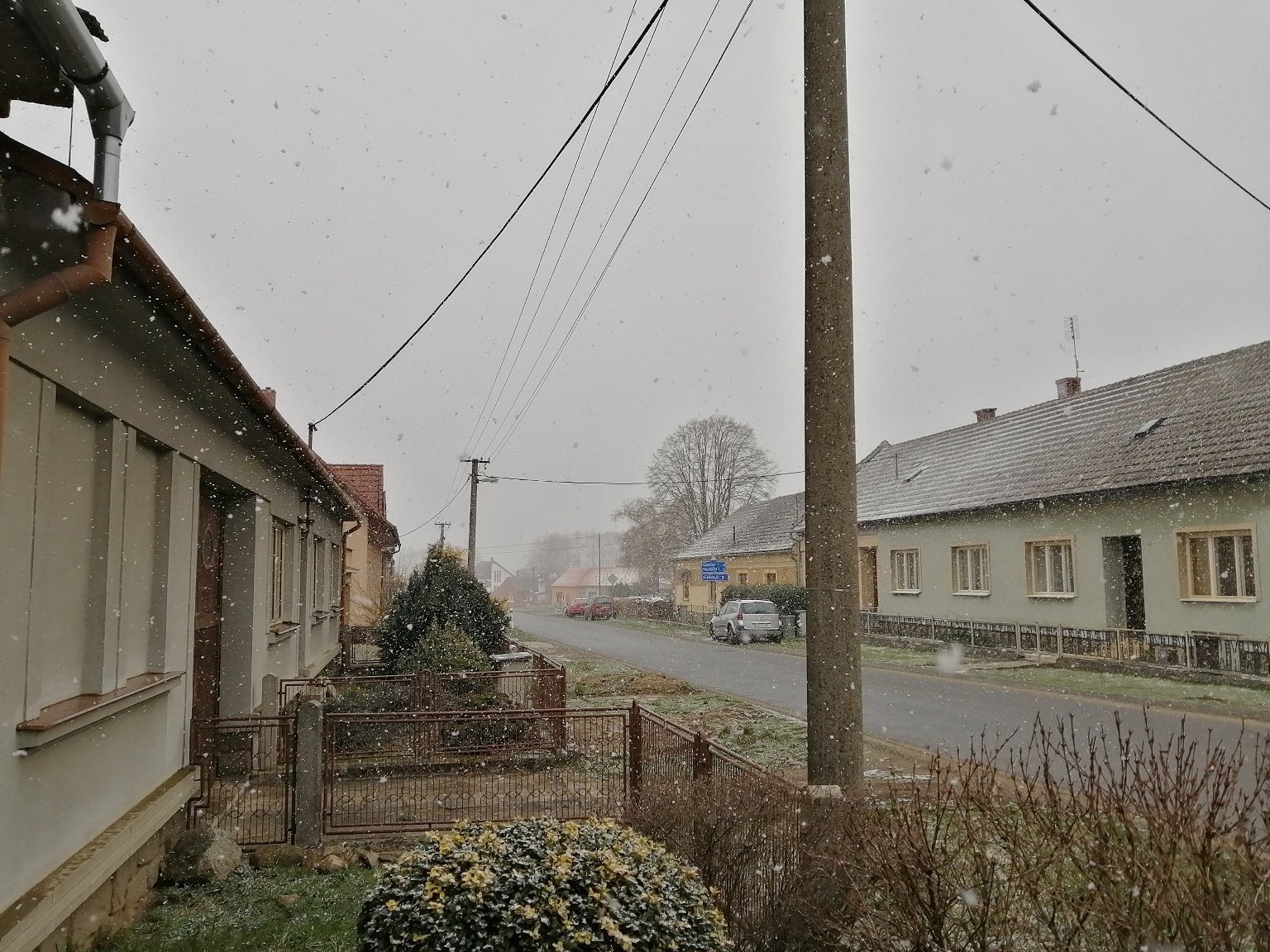 Silnější přeháňka se sněhovými krupkami, zase je lehce poprášeno.
