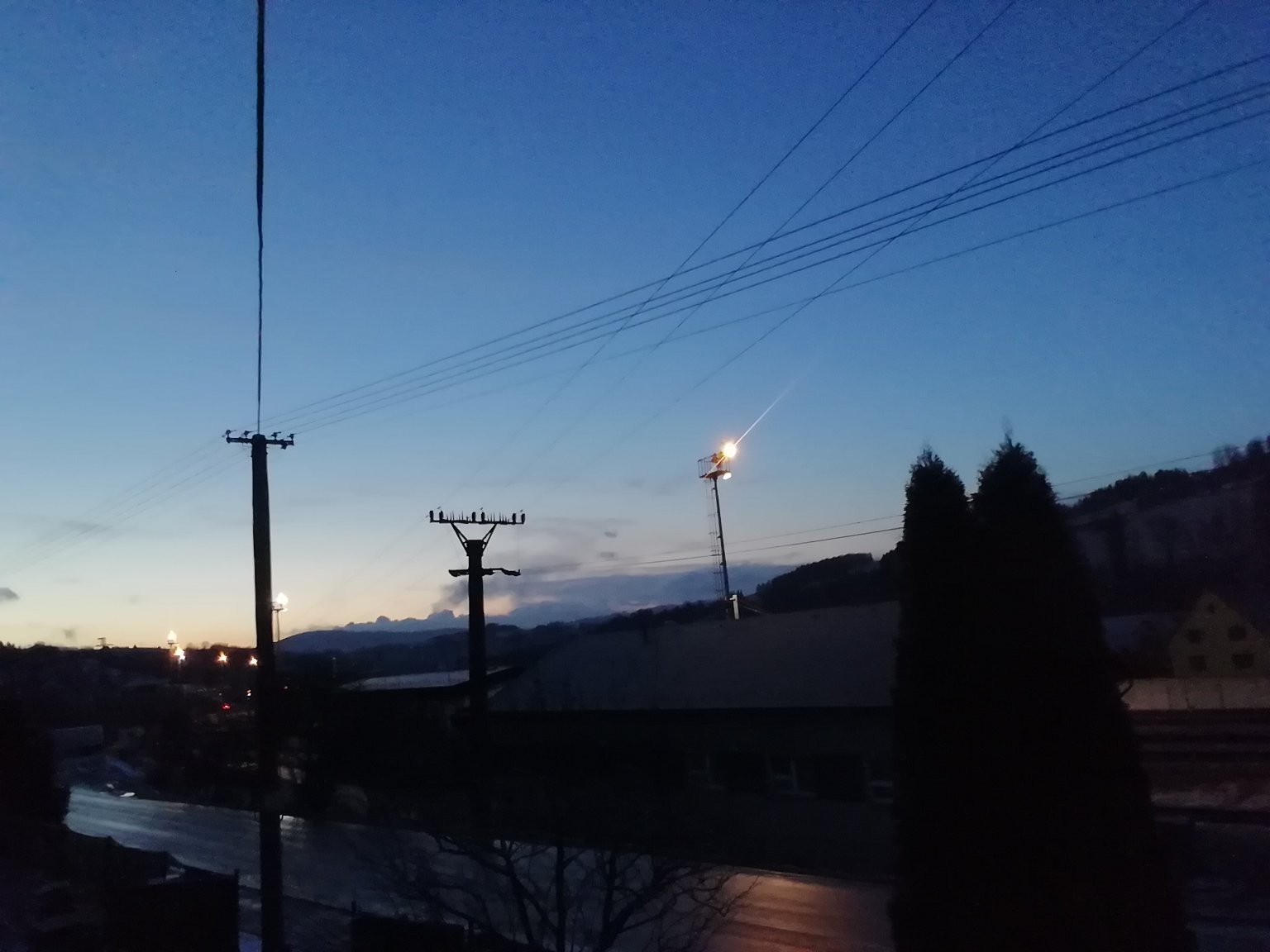 Aktuálně převažuje většinou skoro jasno a fouká většinou slabý vítr, slabý poprašek sněhu tu leží