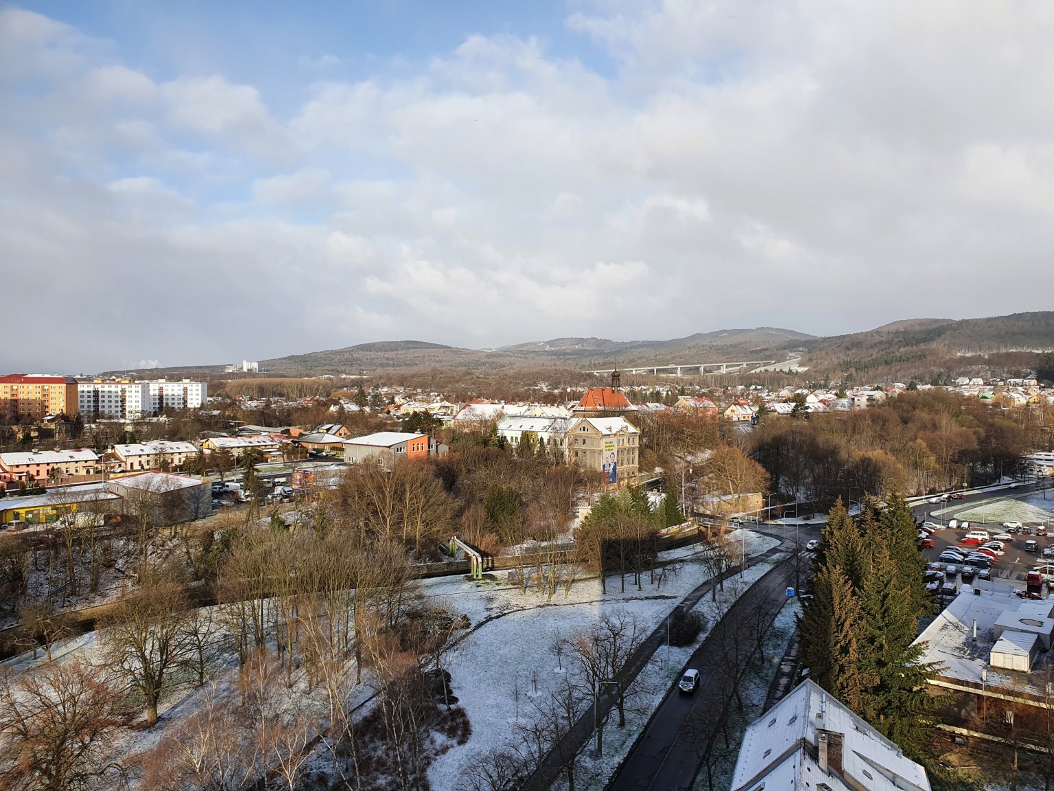 Zamračené, mierne sneženie, Sneh od 5 do 10 cm.