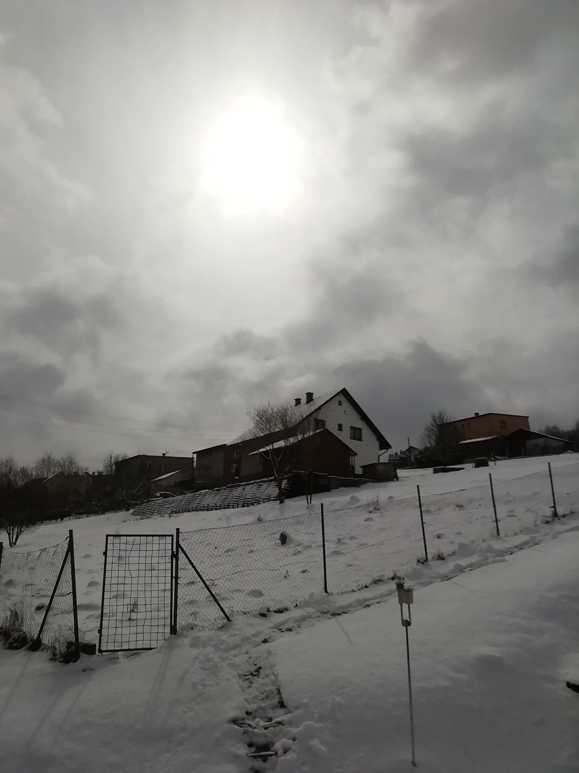 Aktuálně zataženo, skončila řádná sněhová přeháňka :)