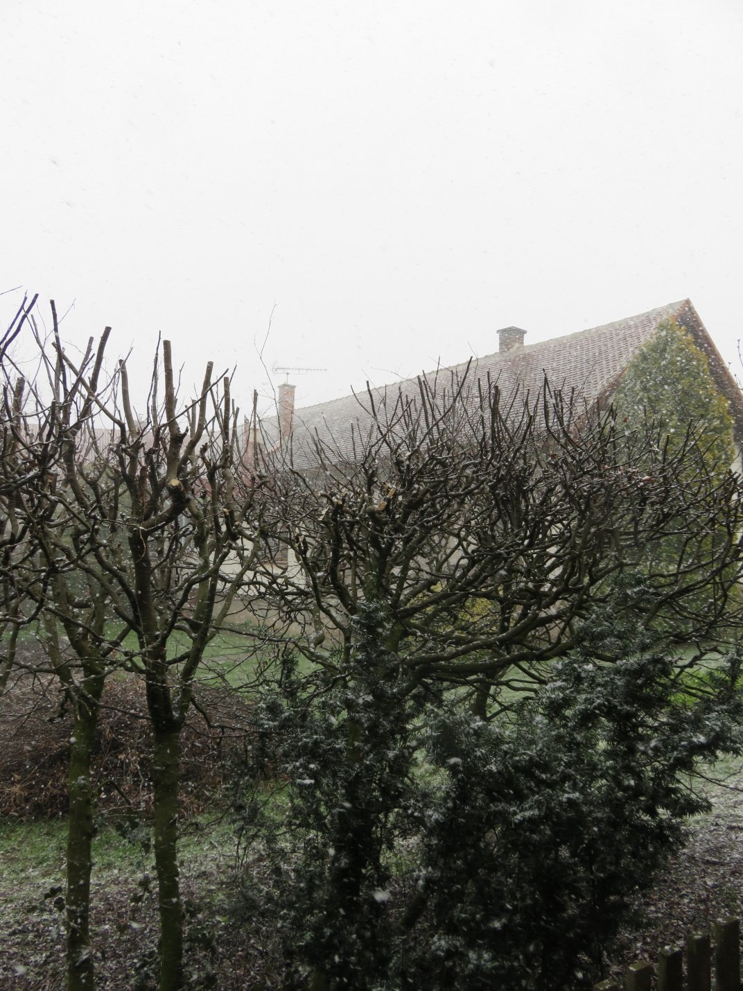 2021 04 08 v 09:32:58 přestalo sněžit teplota klesla na 1° na zemi jen poprašek