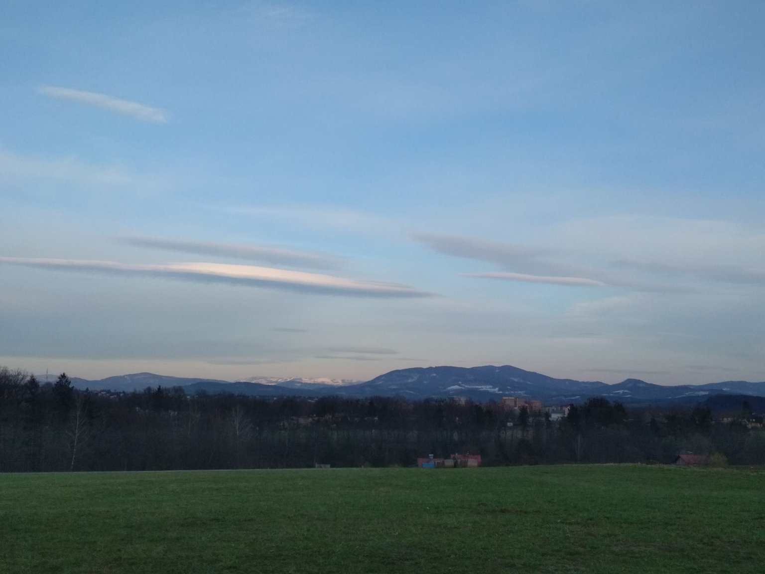 Oblačno až skoro zataženo. Vítr většinou do 3 m/s. Beze srážek. Max T 14,8°C, min T -2,4°C.