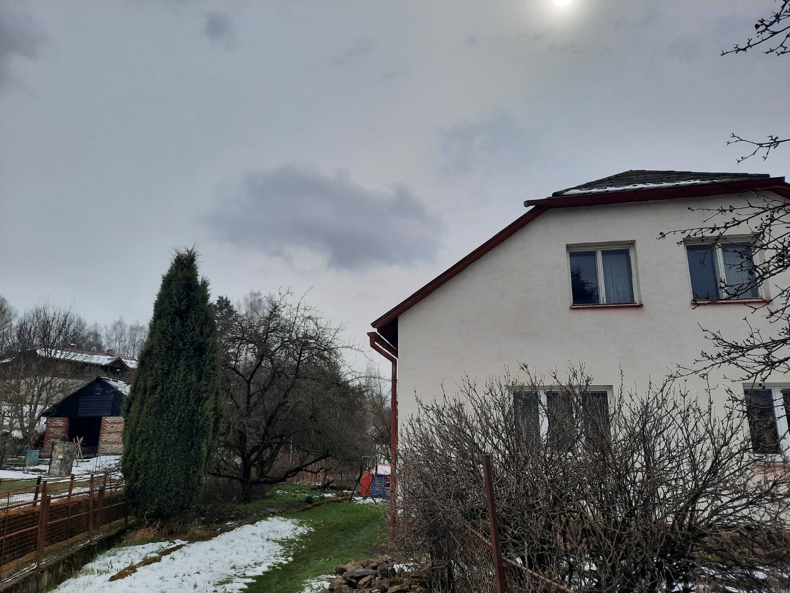1,5°C, Zataženo. Velmi slabe sněhové mrholení. průměr sněhové pokrývky je kolem 3.cm (naměřil jsem to).