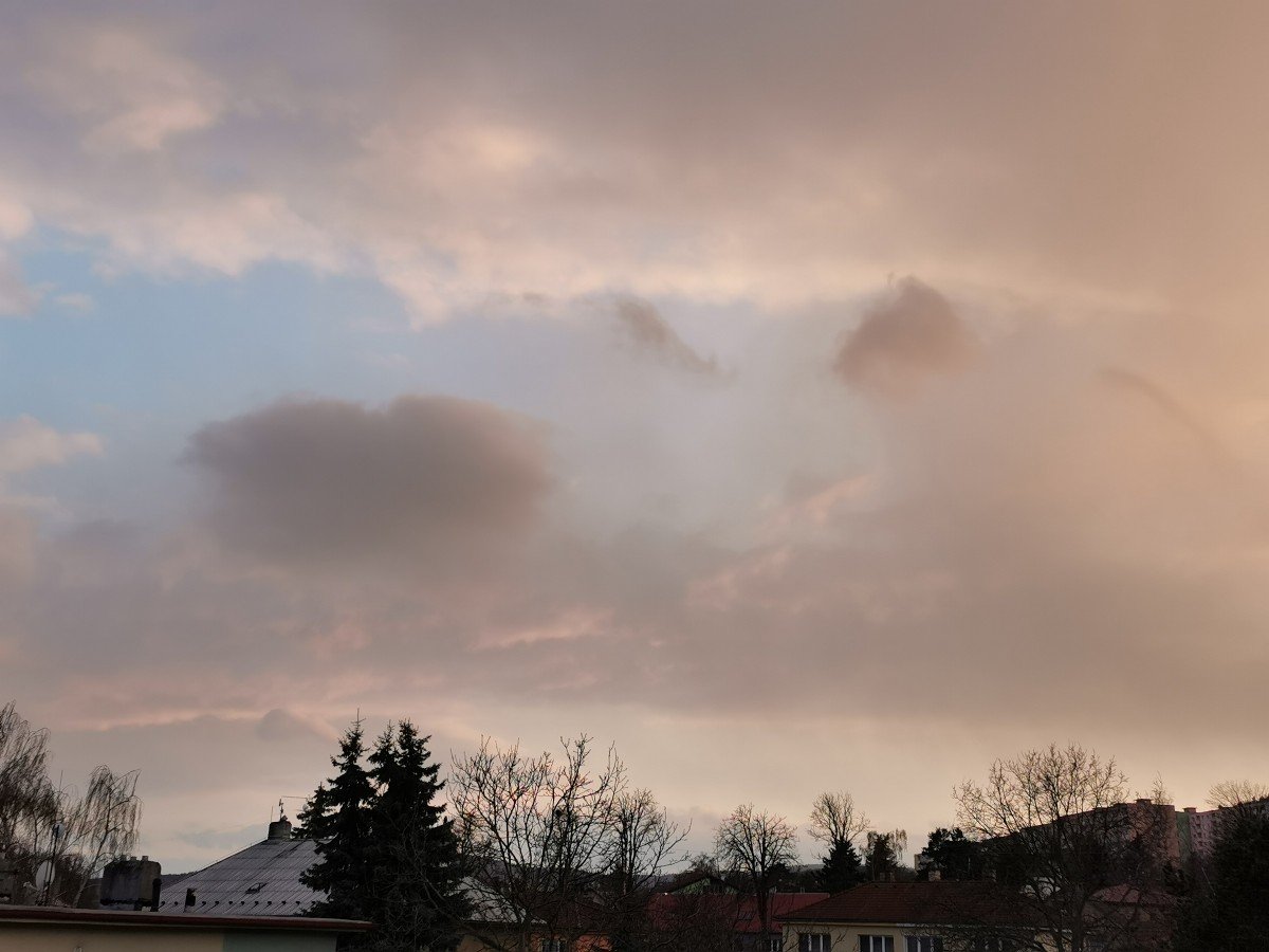 Aktuálně převažuje většinou zataženo až skoro zataženo a mírná až silná sněhová přeháňka napadl lehký poprašek sněhu a fouká většinou slabý přechodně až mírný vítr