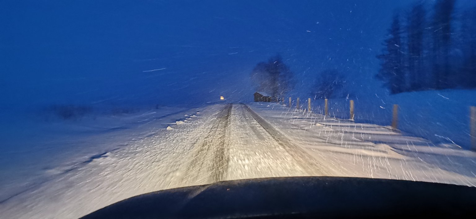 Aktuálně převažuje většinou zataženo a slabě sněží a fouká většinou slabý vítr, sníh většinou 2 cm, místama do 5 cm..
