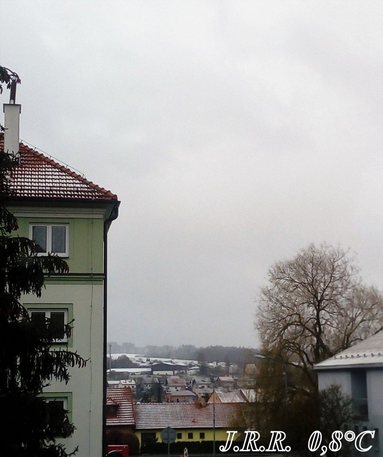 Zamračené, slabé sneženie, sneh 11 až 14 cm.