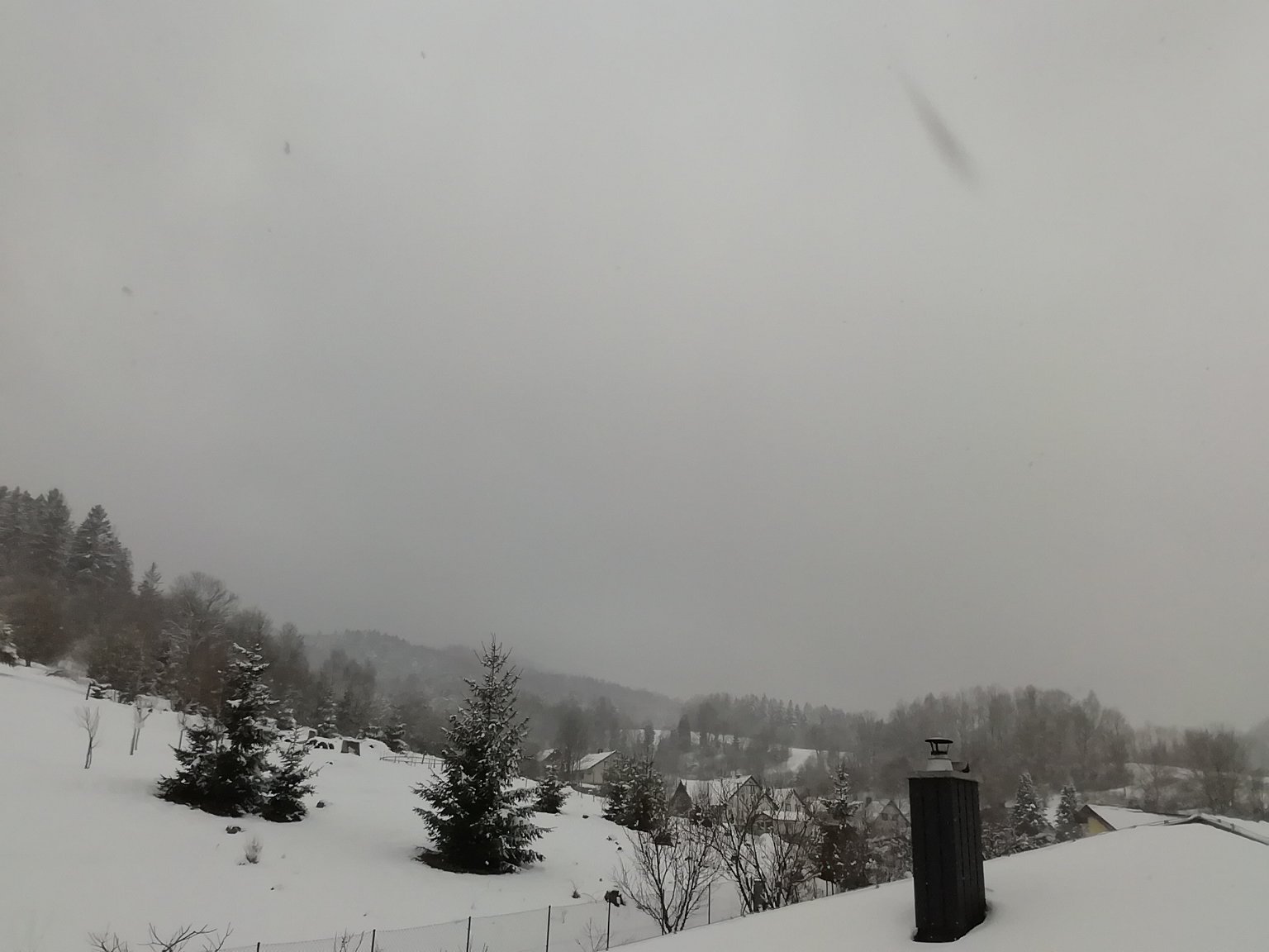 Aktuálně převažuje většinou skoro zataženo počasí se po slunečném ránu kazí a fouká většinou slabý vítr, večer se má vrátit sníh ach jo..